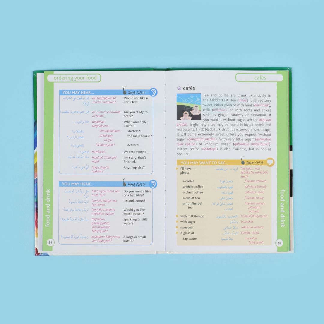 • فضلاً عن ذلك، يتميز هذا الكتاب بسهولة استخدامه، ويتضمّن نصائح للسّفر وإرشادات لاستخدام اللّغة، بالإضافة إلى قاموس مصغّر مزدوج.