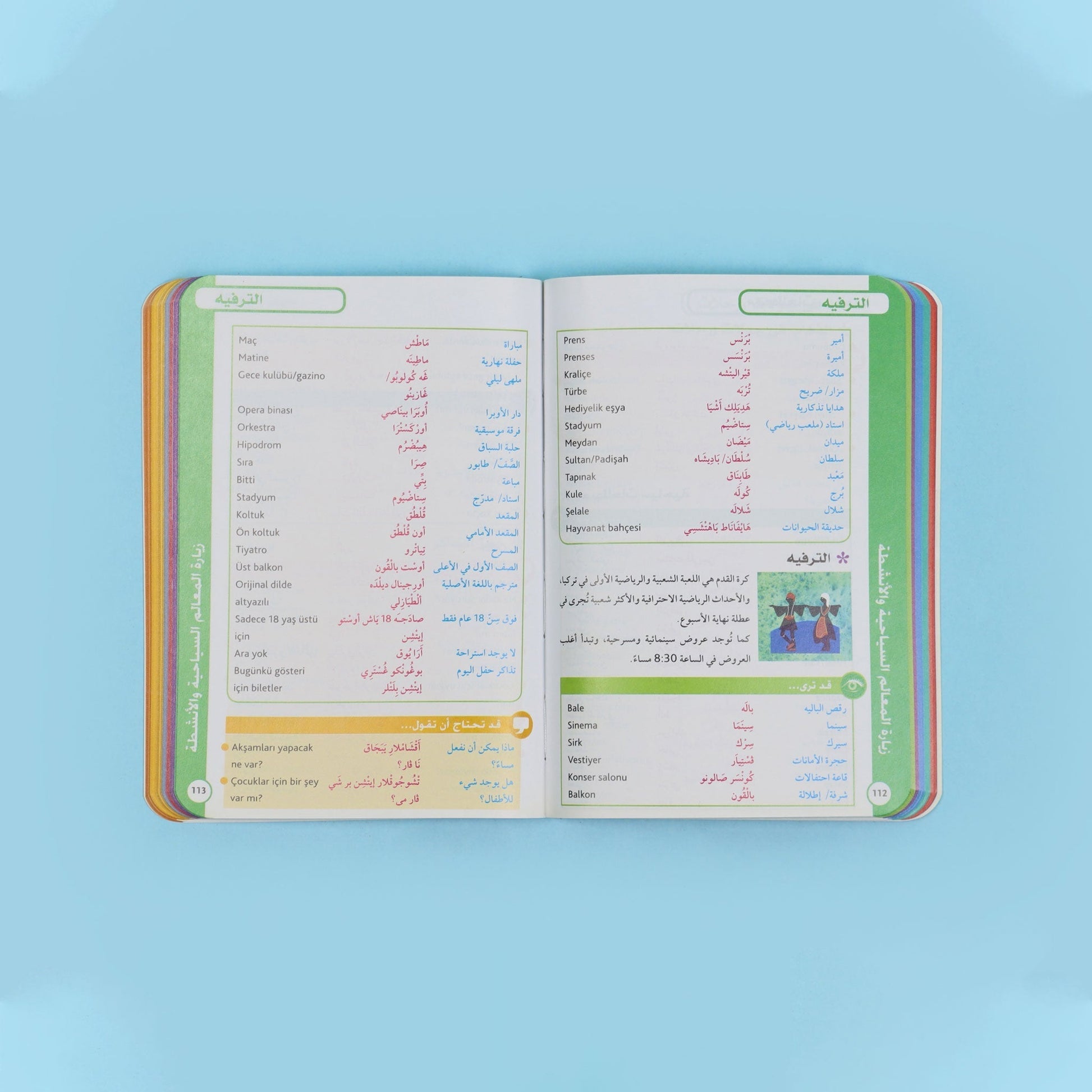 • فضلاً عن ذلك، يتميز هذا الكتاب بسهولة استخدامه، ويتضمّن نصائح للسّفر وإرشادات لاستخدام اللّغة، بالإضافة إلى قاموس مصغّر مزدوج.
