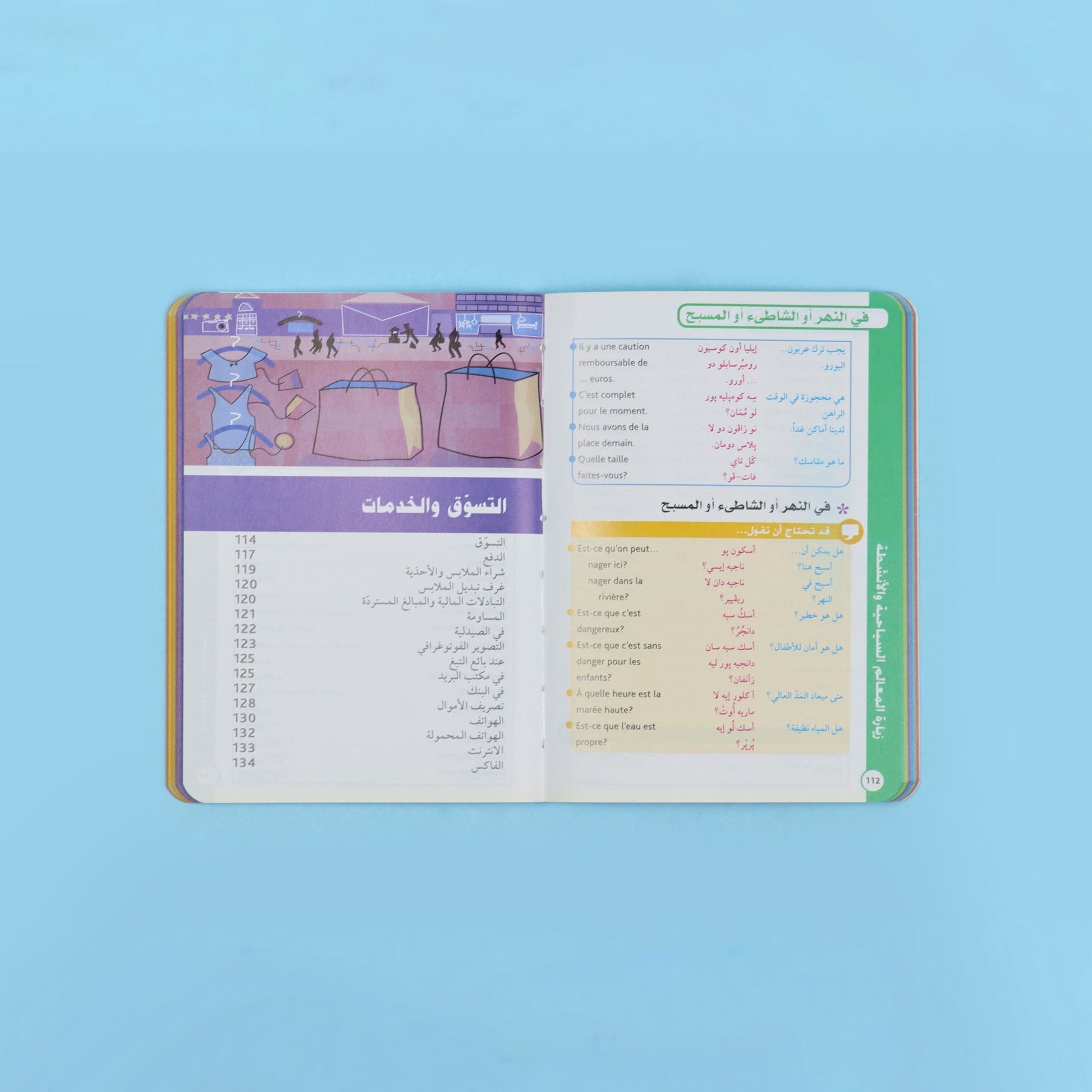 • فضلاً عن ذلك، يتميز هذا الكتاب بسهولة استخدامه، ويتضمّن نصائح للسّفر وإرشادات لاستخدام اللّغة، بالإضافة إلى قاموس مصغّر مزدوج.