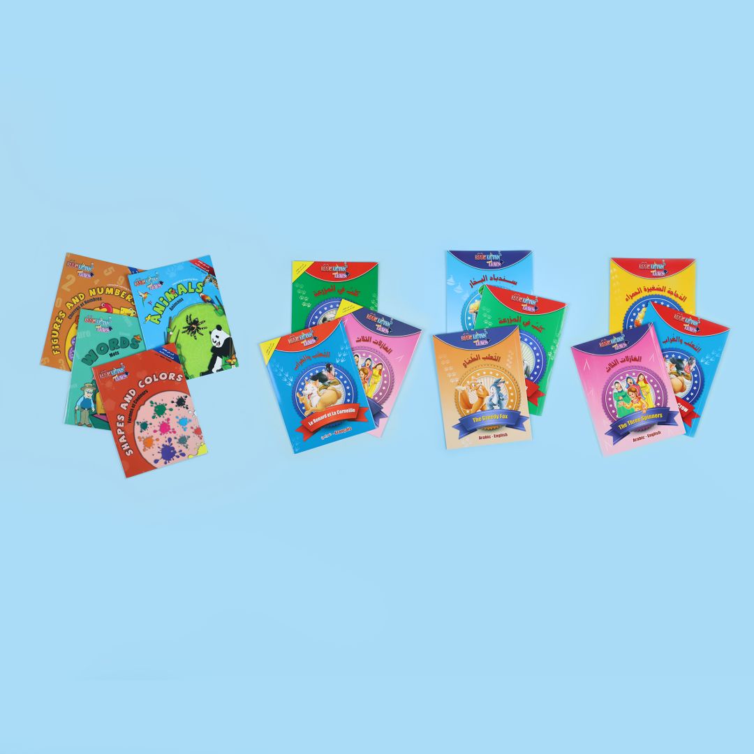 – 6 كتب تعليميّة وهي: كتابين عن الأحرف الهجائية العربية والإنجليزية، الأشكال والألوان، الأرقام، الكلمات، الحيوانات.